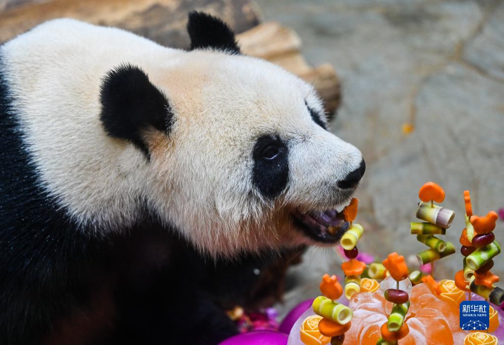 當日,為慶祝大熊貓“貢貢”和“舜舜”來到海南五周年,位於海口的海南熱帶野生動植物園為這對“熊貓兄弟”準備了玩具和竹筍、水果等美食,同時舉辦多種科普活動和互動游戲,吸引不少游客參加。