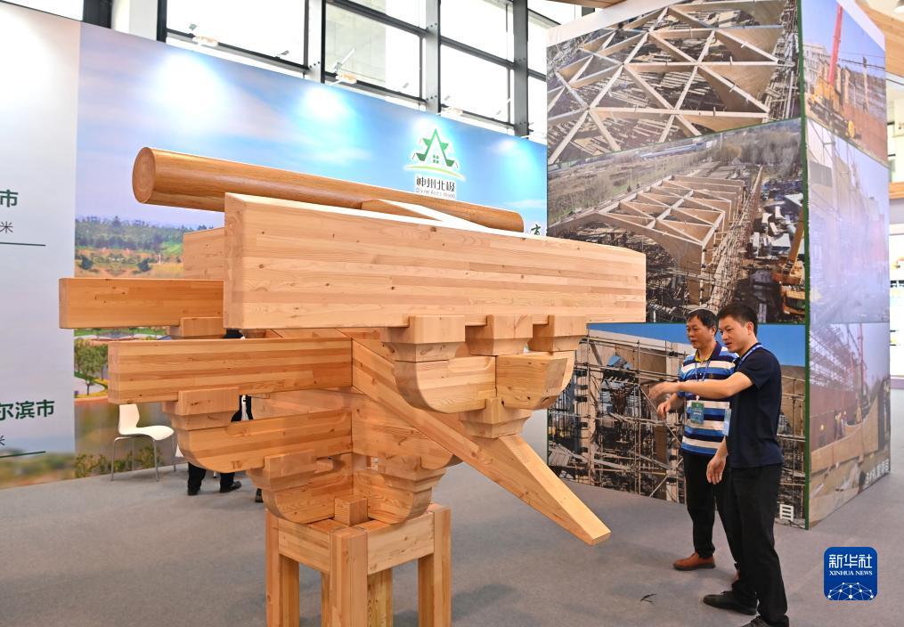 11月25日,觀眾在南寧國際會展中心參觀榫卯結構模型。