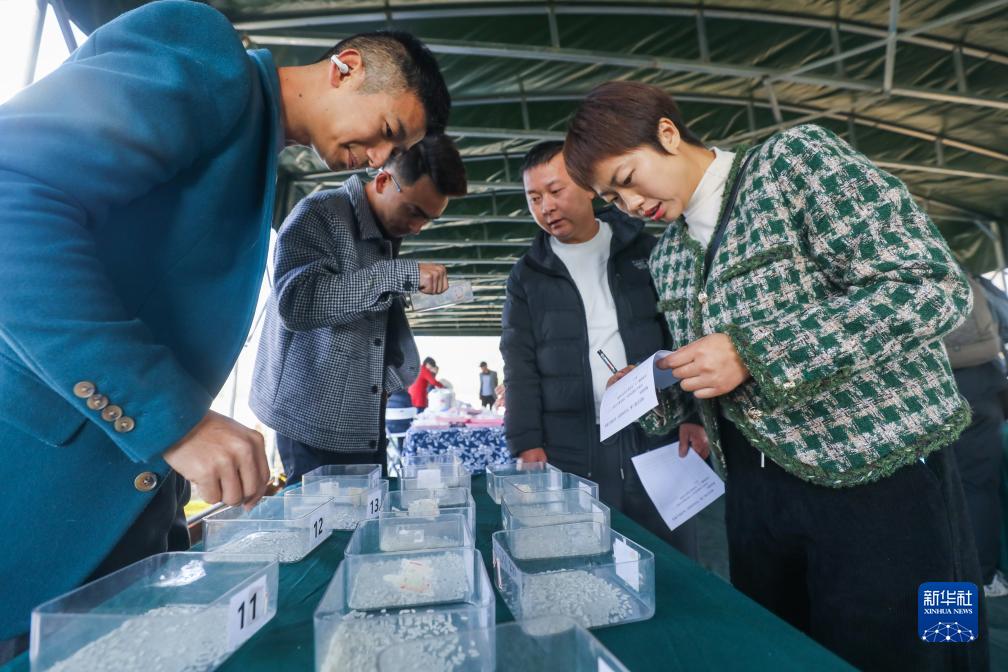 11月25日,在杭州市臨安區郎家村,評委在金獎大米評選環節為報名參賽的糧食生産基地打分。