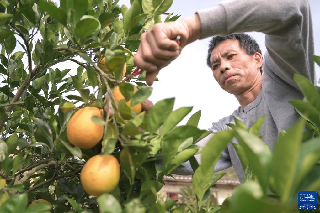 11月24日,古田縣黃田鎮金翼村村民採摘臍橙。