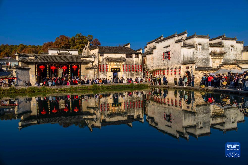 初冬時節,安徽省黃山市黟縣的徽派建築與自然環境融為一體,呈現出中國傳統山水畫般的美感。游人徜徉其間,猶如“畫”中游。