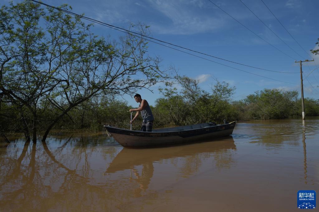 11月24日,在巴西南裏奧格蘭德,居民划船出行。