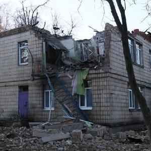 11月25日,在烏克蘭基輔市,一棟建築屋頂被無人機碎片擊中。