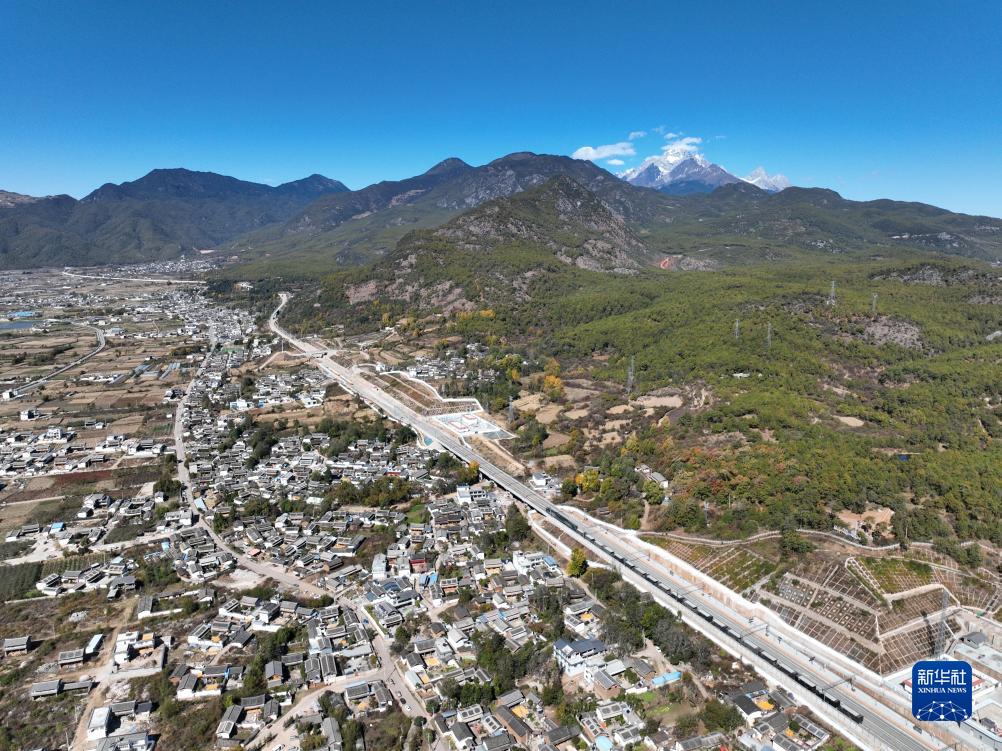 11月25日在麗江市境內拍攝的即將開通的麗香鐵路(無人機照片)。