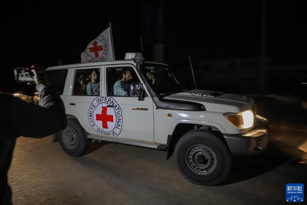 11月25日,紅十字國際委員會工作人員將被釋放人員送往加沙地帶南部拉法口岸。