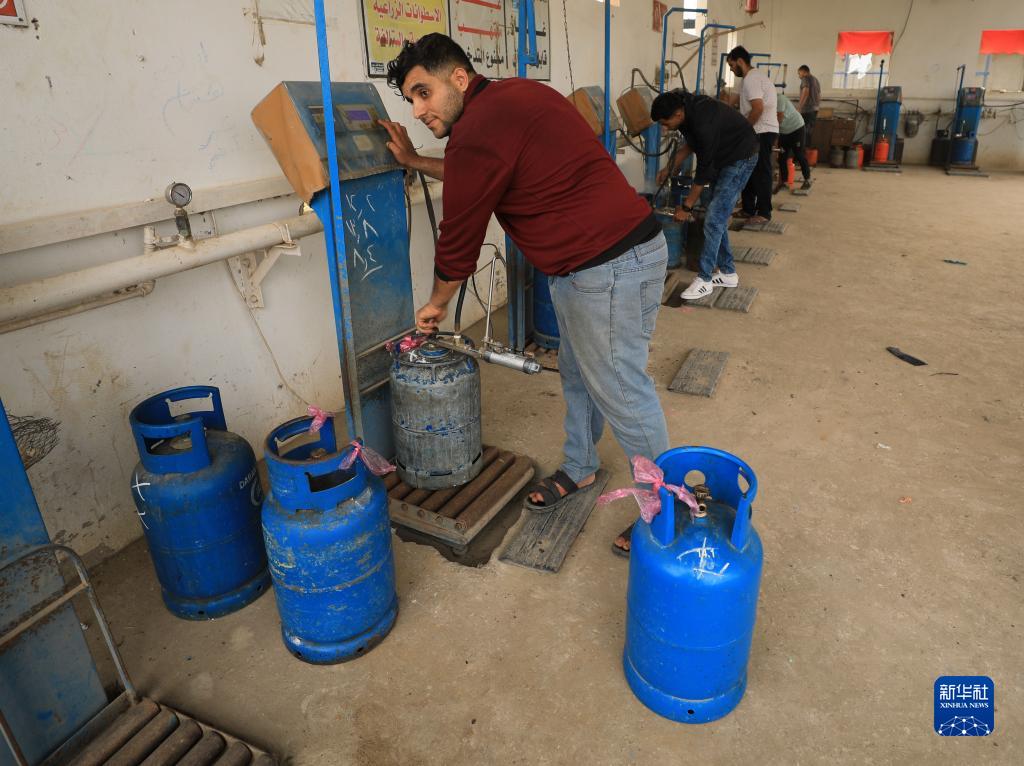 11月25日,在加沙地帶南部城市汗尤尼斯,人們為天然氣罐充氣。