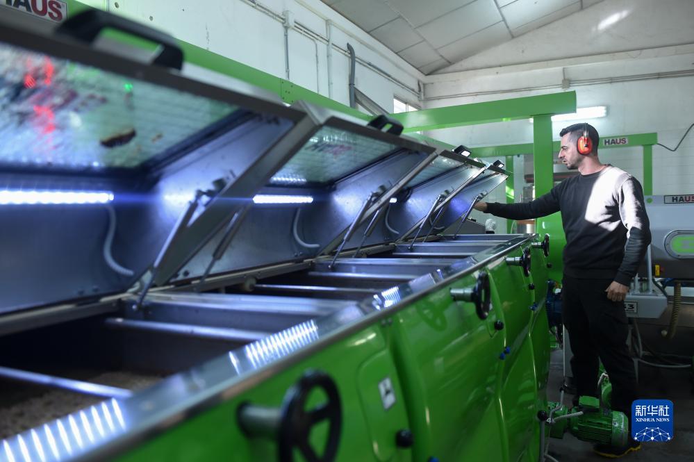 11月24日,男子在西班牙卡塞雷斯的一處橄欖油工廠內工作。