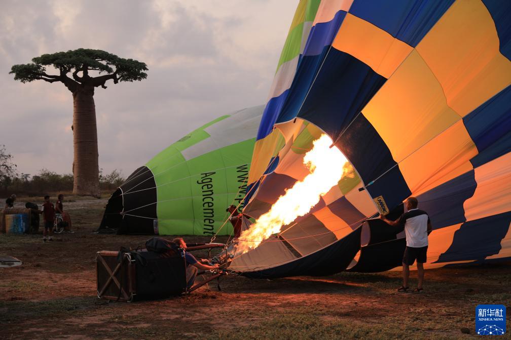 當日,在馬達加斯加穆龍達瓦猴麵包樹大道,來自瑞士、法國等國的熱氣球旅行愛好者於日出時分乘坐熱氣球升空。猴麵包樹與熱氣球構成了一道獨特的風景。