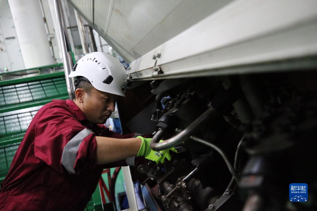 11月26日,“雪龍2”號機工長湯建國在檢查設備。