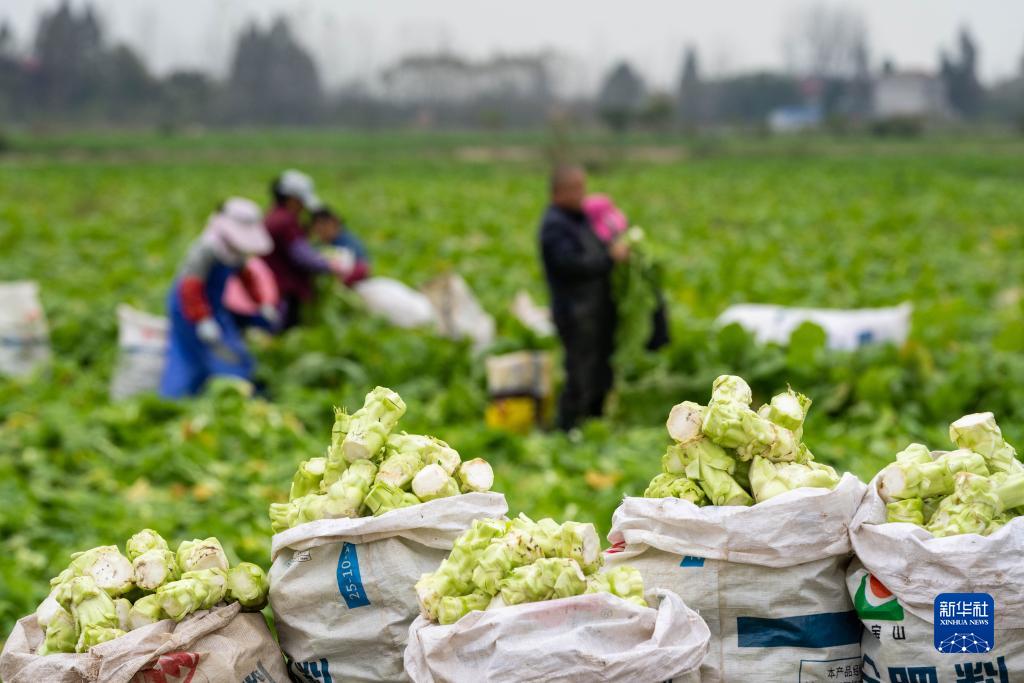 近日,湖南省益陽市南縣種植的榨菜迎來豐收,村民們趁着晴好天氣抓緊采收,削根、去葉、裝袋,田間地頭一派忙碌景象。今年南縣榨菜種植面積約2萬畝,總産值有望達到5000萬元。