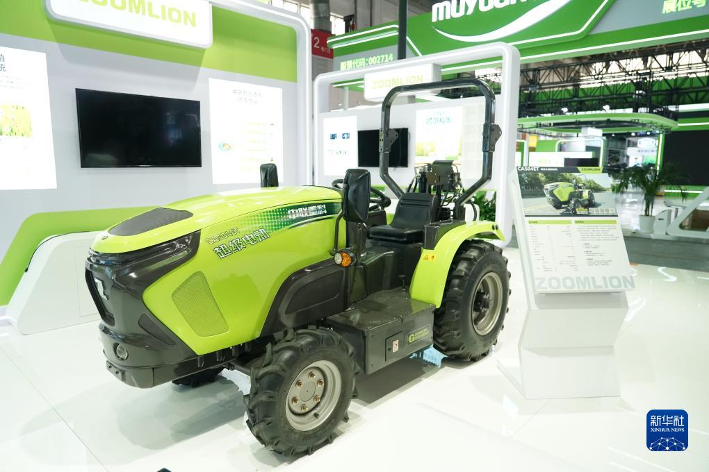 11月26日在中國國際供應鏈促進博覽會綠色農業鏈展區拍攝的一款電動大棚拖拉機。