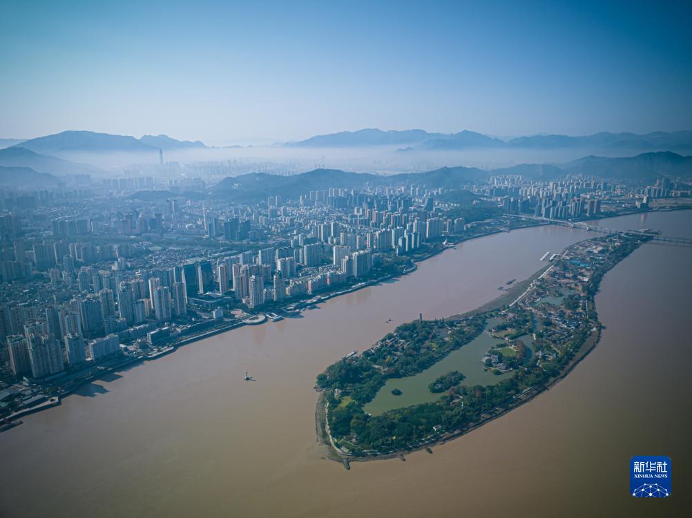 甌江江心嶼與溫州朔門古港遺址隔江相望(11月23日攝,無人機照片)。