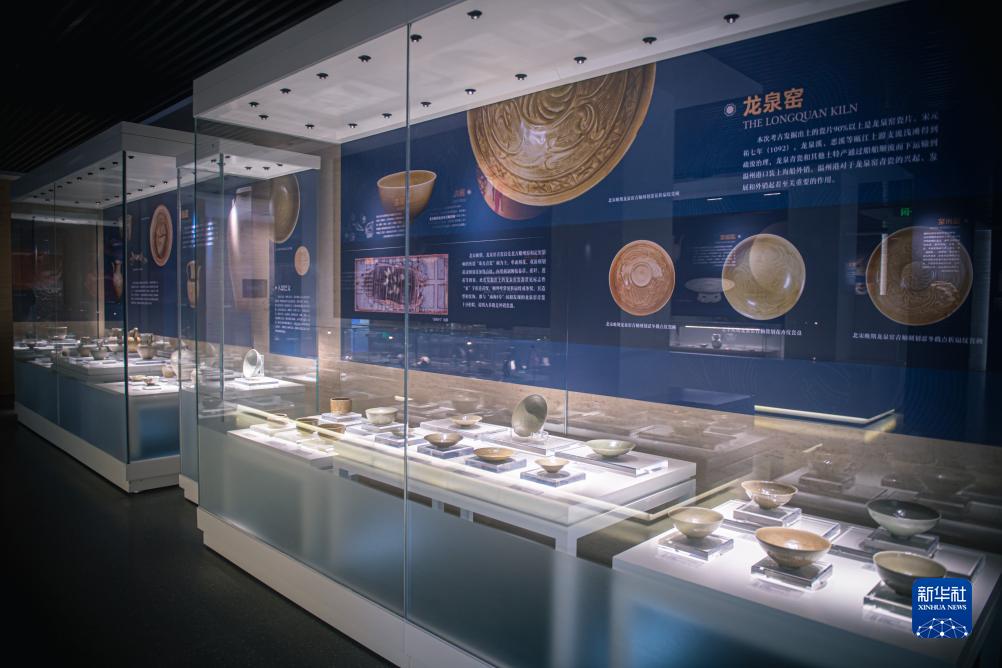 這是11月23日拍攝的溫州朔門古港遺址考古成果展。