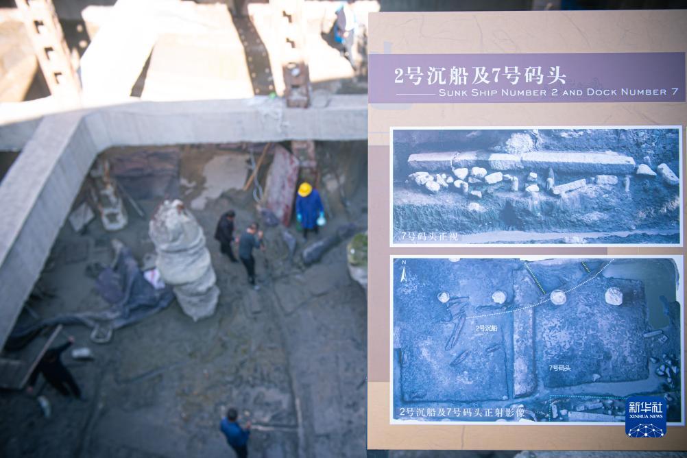 11月23日,工作人員在溫州朔門古港遺址考古發掘現場工作。