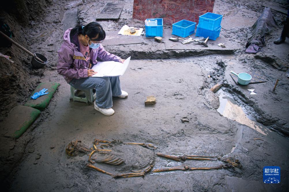 11月23日,工作人員在溫州朔門古港遺址考古發掘現場工作。