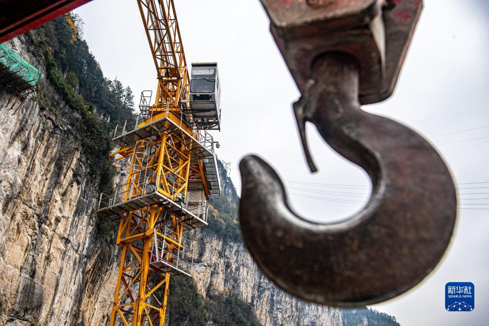 11月26日,在位於重慶市酉陽土家族苗族自治縣龔灘鎮的阿蓬江大橋施工建設現場,工人正在現場作業。