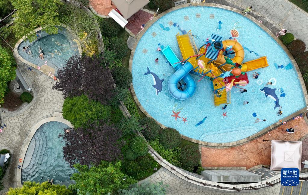 11月26日,游客在貴州息烽溫泉泡溫泉(無人機照片)。