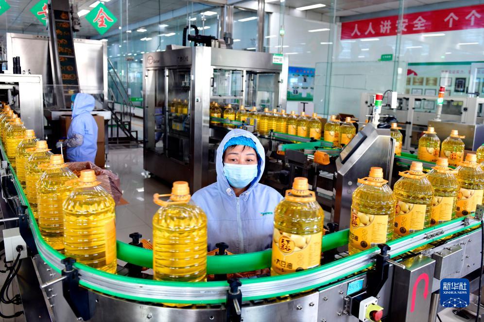 11月26日,在山東香馳糧油有限公司,工作人員在食用油生産線值守。