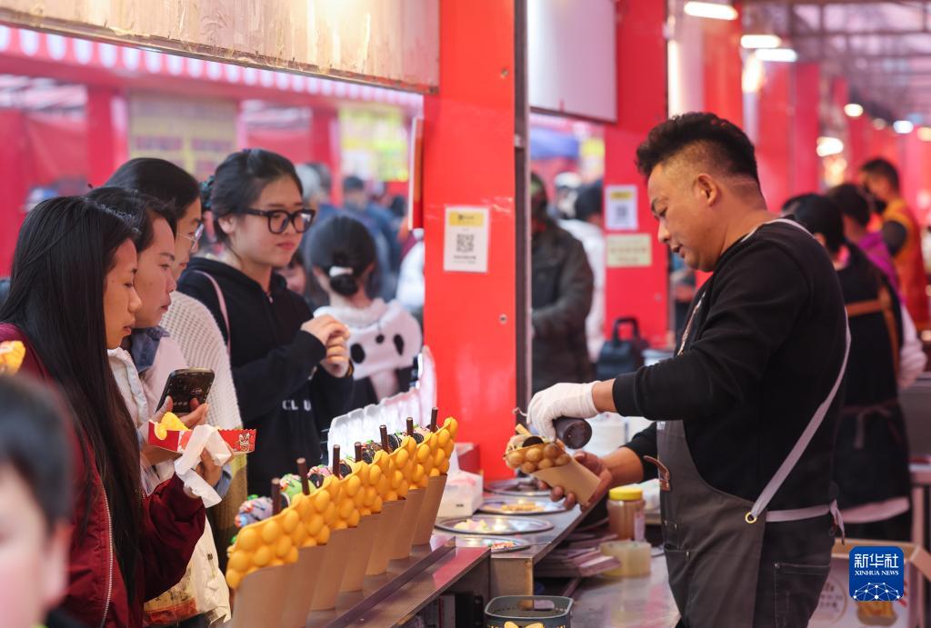 11月26日,在建德市乾潭鎮,美食展位吸引了游客。