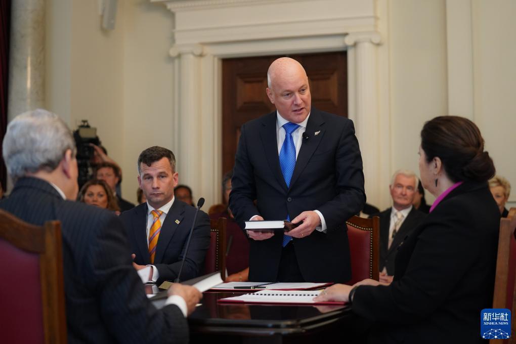 11月27日,在新西蘭首都惠靈頓,國家黨領導人克裏斯托弗·拉克森(中)參加宣誓就職儀式。