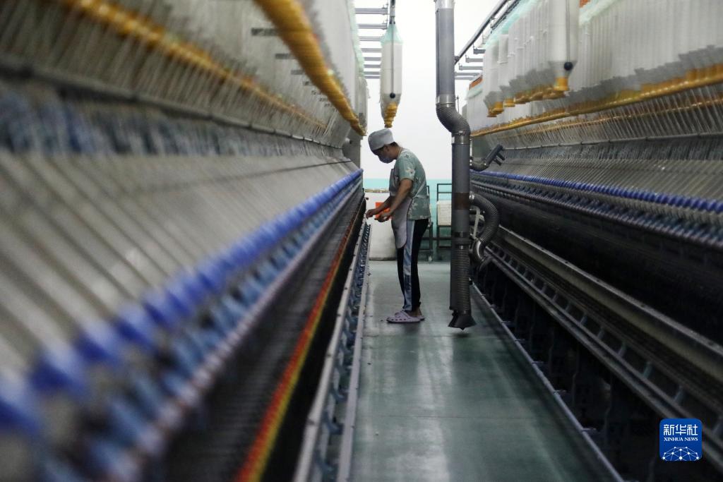 11月26日,在涇川縣一家棉紗生産企業,工人在棉紗生産線上作業。