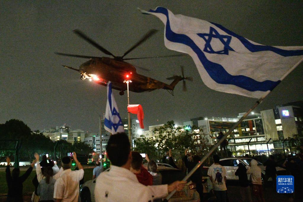 11月26日,搭載獲釋人員的直升機抵達以色列佩塔提克瓦一所醫院。