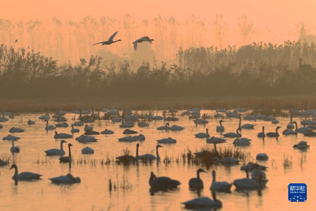 初冬時節,數千隻小天鵝陸續飛抵位於湖南省岳陽市的屈原管理區東古湖濕地越冬。近年來,屈原管理區先後實施退耕還林、退耕還濕、渠係疏浚、自然修復等工程,多措並舉開展被損小微濕地修復,吸引越來越多的候鳥來此越冬棲息。