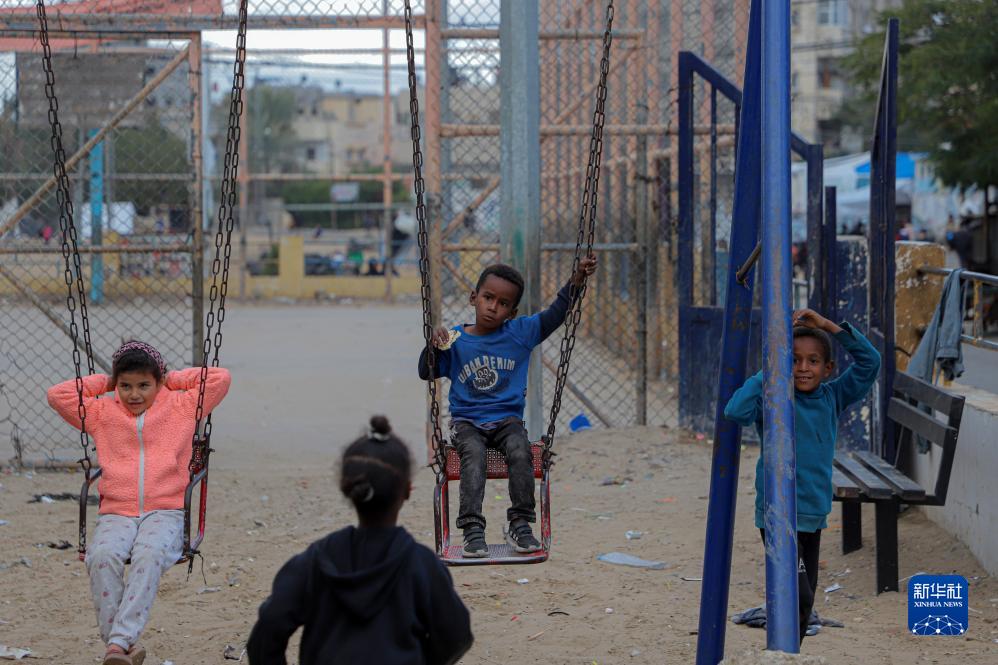 11月27日,孩子們在加沙地帶南部城市拉法一處公園玩耍。