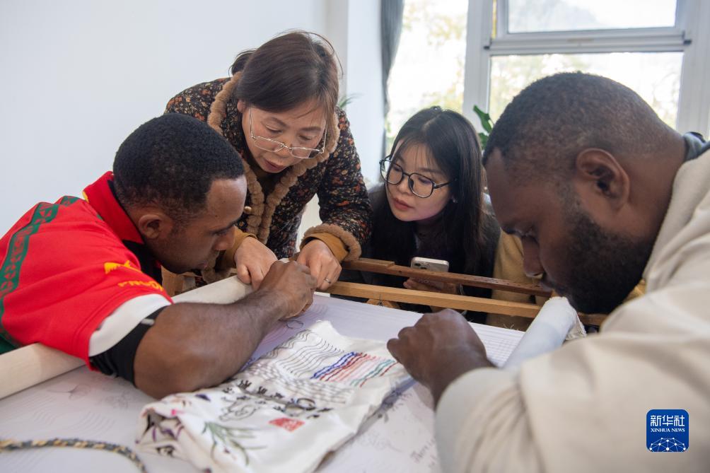 當日,18名來自巴布亞新幾內亞科技大學的師生,走進位於三峽庫區腹地的萬州區三峽秀工坊,體驗三峽刺繡技藝和傳統文化。