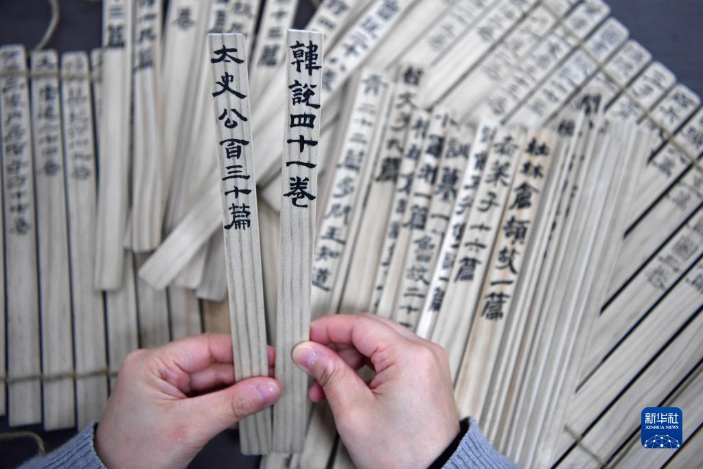 甘肅簡牘博物館工作人員在整理自己製作的簡牘,準備用於博物館的社教體驗(10月25日攝)。新華社記者 陳斌 攝
