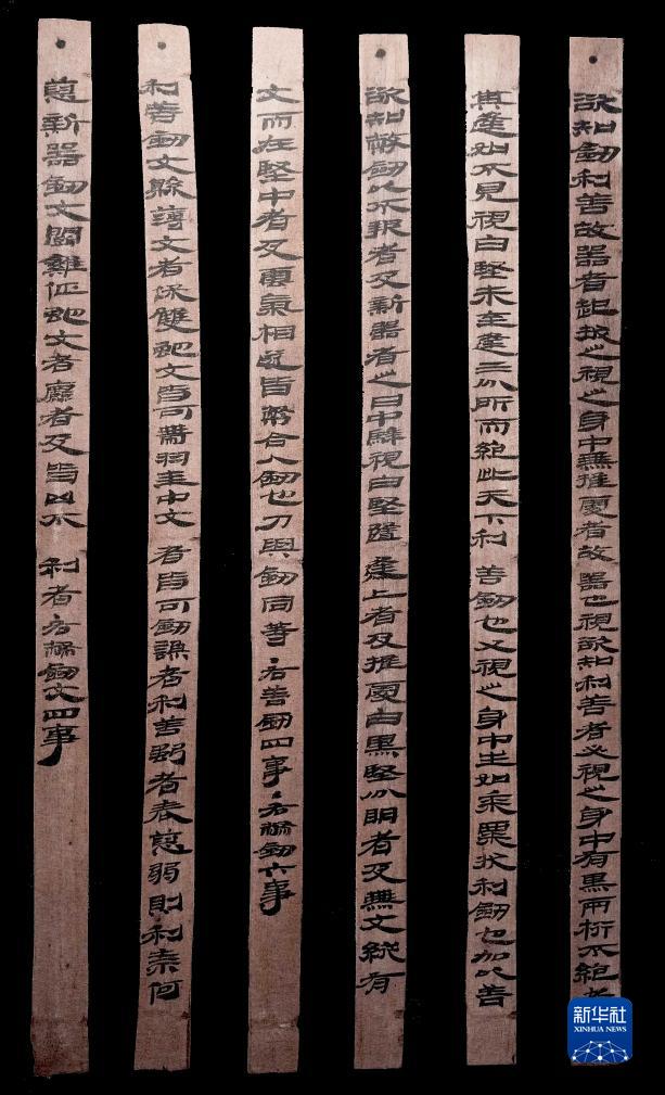 漢簡《相利善弊劍冊》。此簡在書法上有很高造詣,內容主要是辨識寶劍的標準和方法,為後人留下鑒定刀劍的重要知識與技術指導。新華社發(甘肅簡牘博物館供圖)