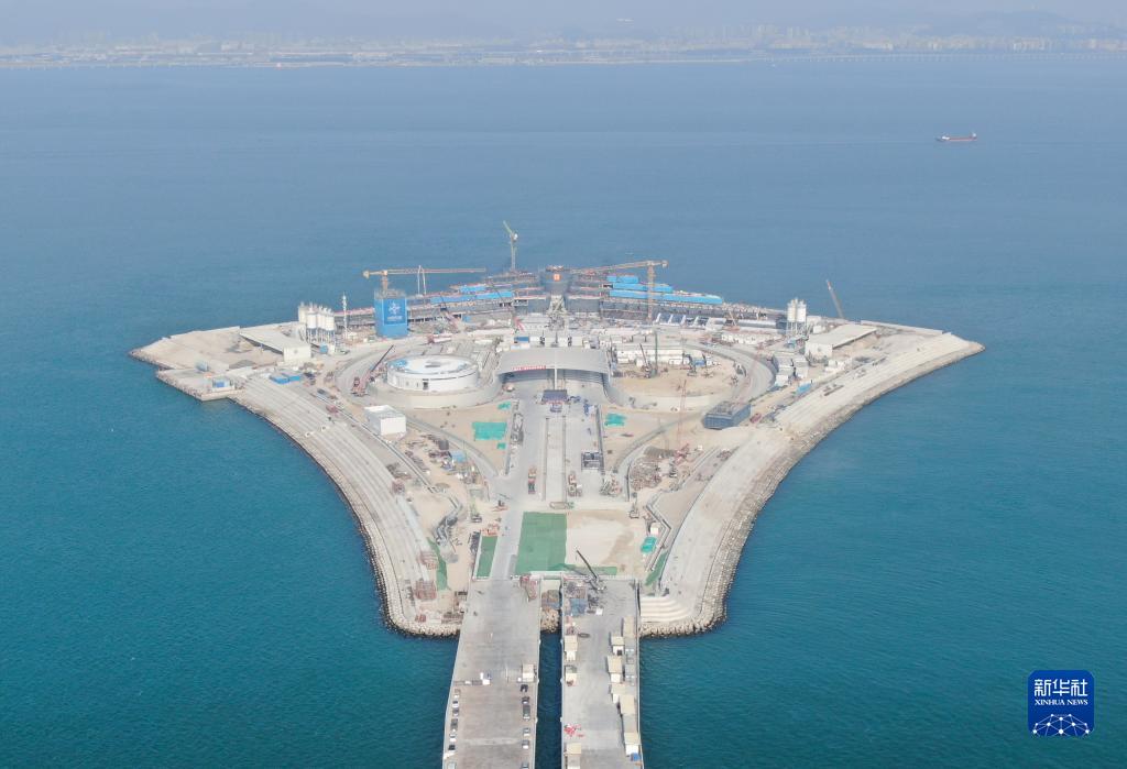 這是深中通道西人工島,形似巨大的風箏(11月27日攝,無人機照片)。