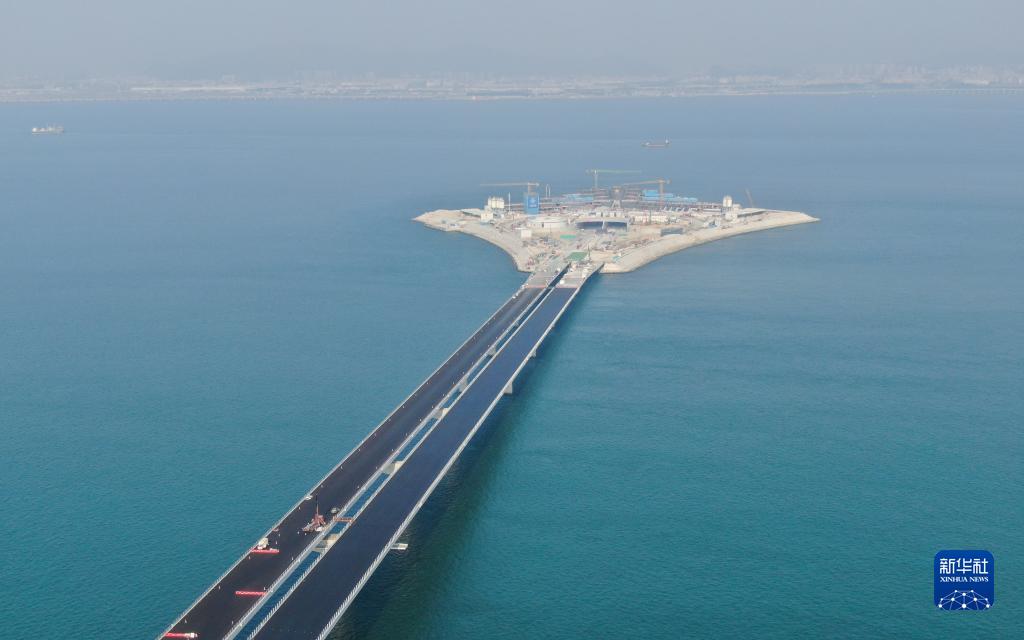 這是深中通道西人工島,形似巨大的風箏(11月27日攝,無人機照片)。