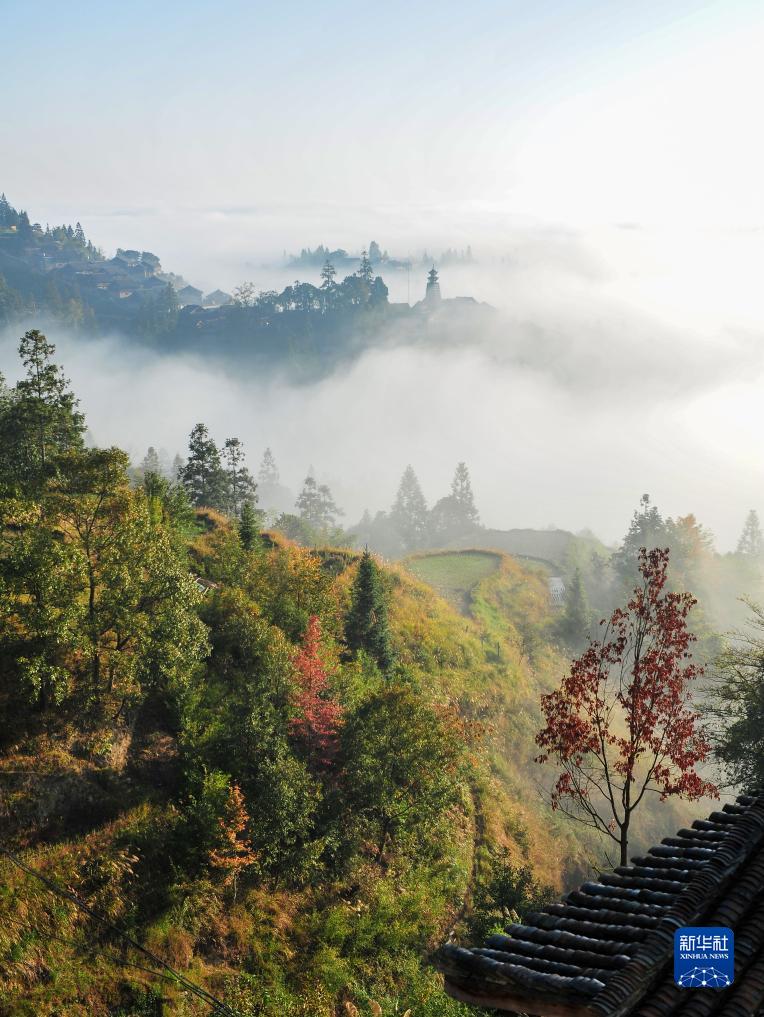 11月28日,貴州省黔東南苗族侗族自治州從江縣高增鄉建華村呈現出雲海景觀。