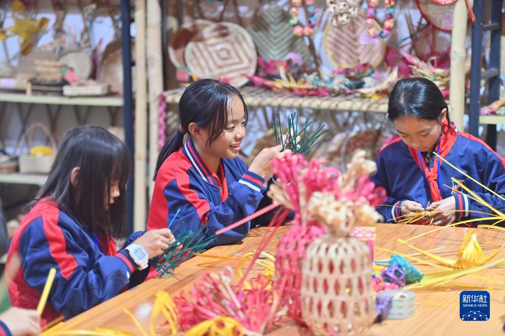 近年來,廣西岑溪市南渡中心小學將當地非遺項目——竹芒編織技藝引進課堂,打造特色校園文化,豐富學生課外生活。