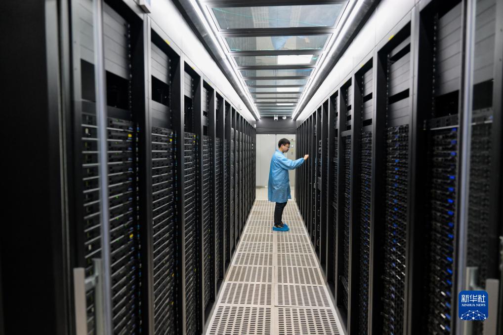 11月28日,工作人員在呼和浩特市和林格爾新區的內蒙古中科超算科技有限公司對設備進行巡檢。