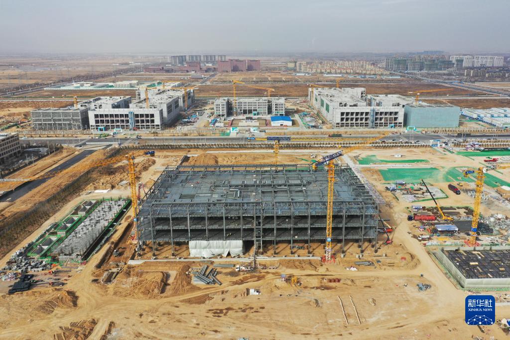 這是11月28日在呼和浩特市和林格爾新區拍攝的建設中的華為雲和林格爾數據中心項目——雲谷西區(無人機照片)。