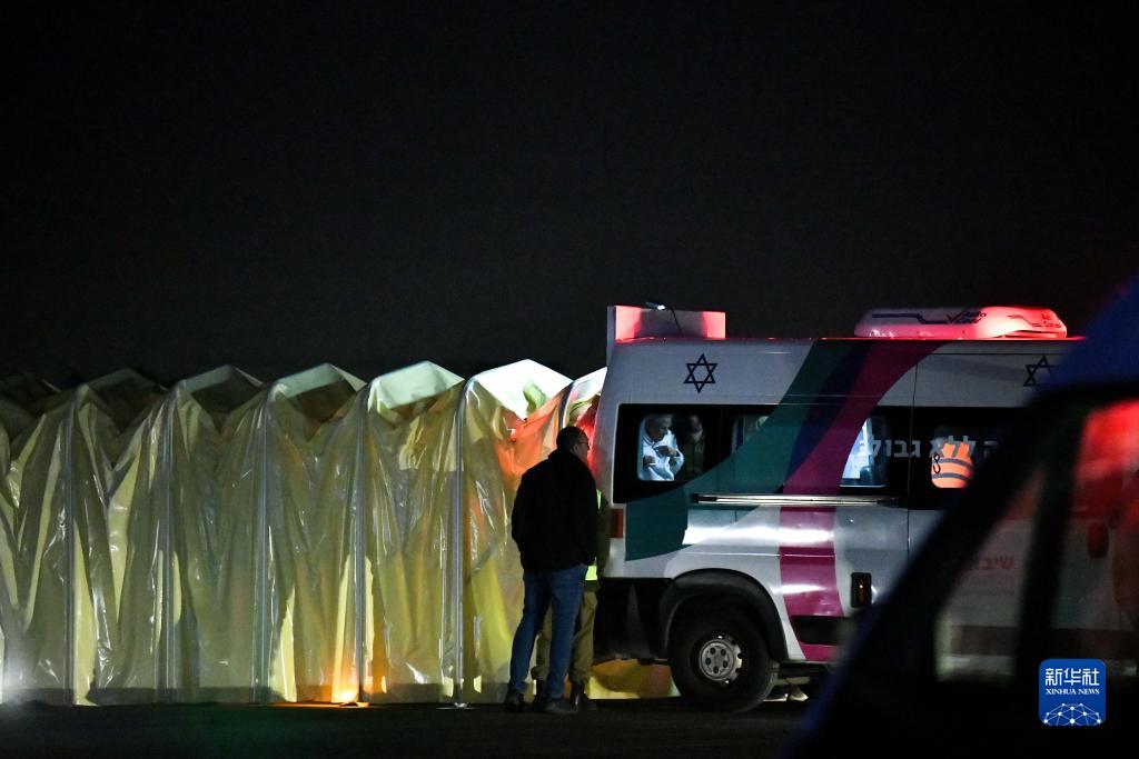 11月29日凌晨,獲釋的第五批被扣押人員搭乘直升機抵達以色列拉馬特甘的一所醫院。