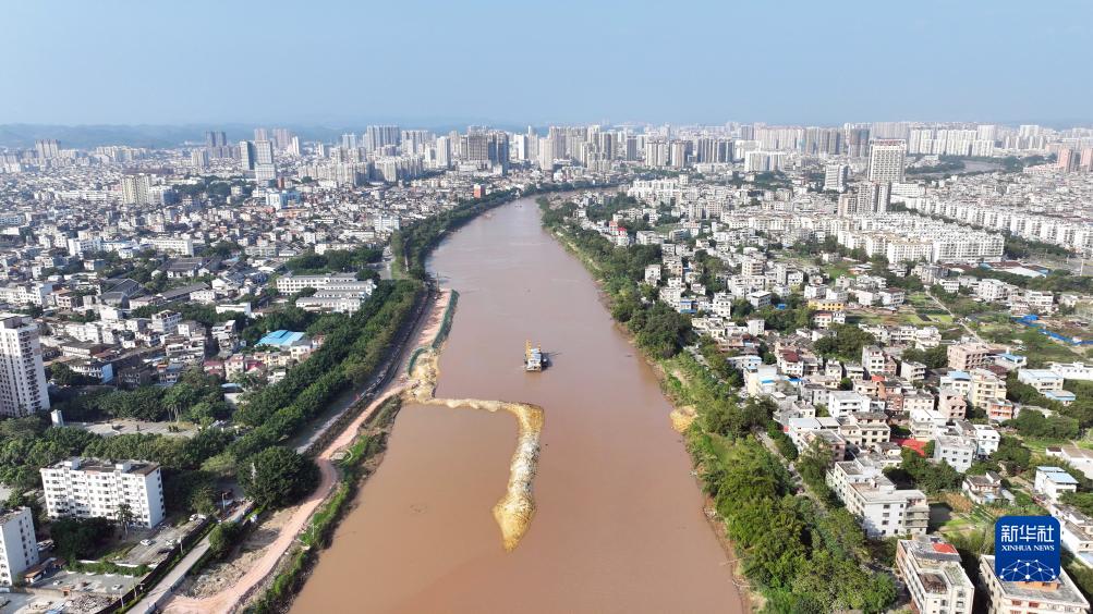 這是11月25日拍攝的平陸運河途徑欽州市區的航道(無人機照片)。