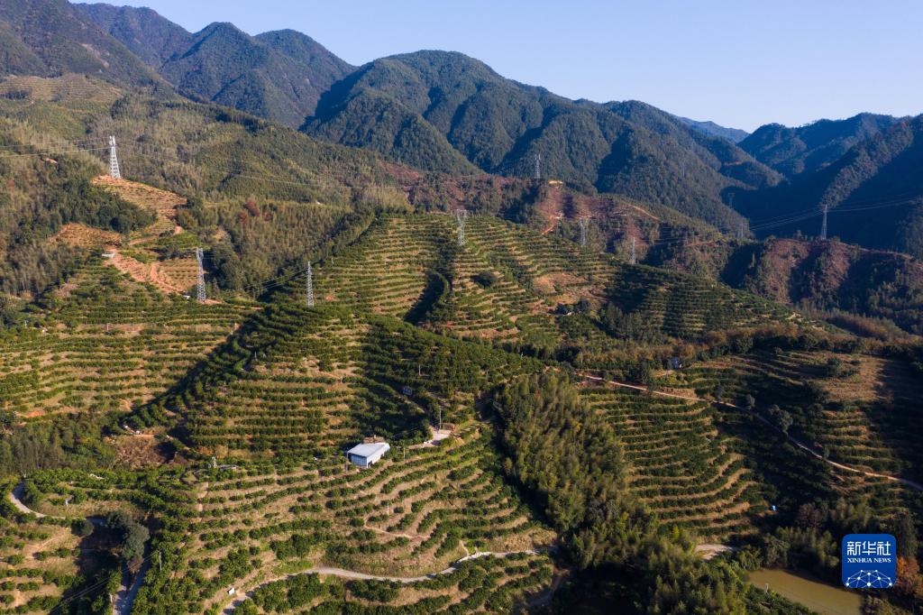 11月28日在浙江省麗水市慶元縣黃壇村拍攝的外婆家水果專業合作社甜桔柚基地(無人機照片)。