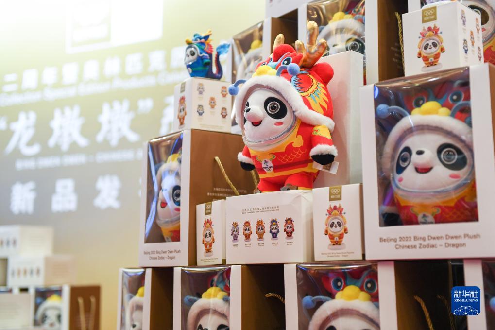 當日,“冰墩墩”龍年新春特別版——“龍墩墩”系列新品在國家體育場金色大廳正式發布。“龍墩墩”作為奧林匹克歷史知識産權再次授權開發的文創産品,延續了中國春節文化、生肖文化特色,成為弘揚奧林匹克精神、創新發展中國文化的典型範例。