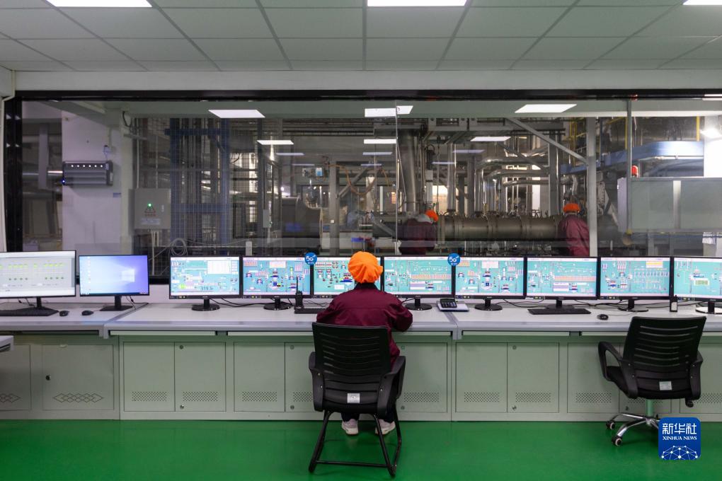 11月28日,技術工程師在生産線邊的中央控制室內關注5G通信下智能化生産狀況。