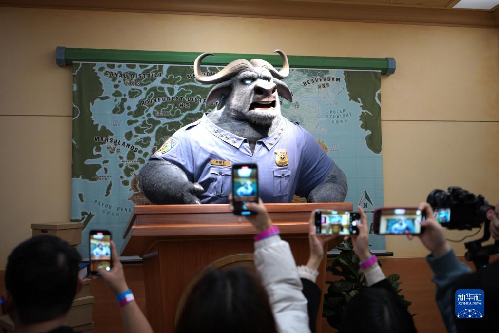 這是11月29日拍攝的上海迪士尼樂園“瘋狂動物城”裏的“警察局牛局長”。