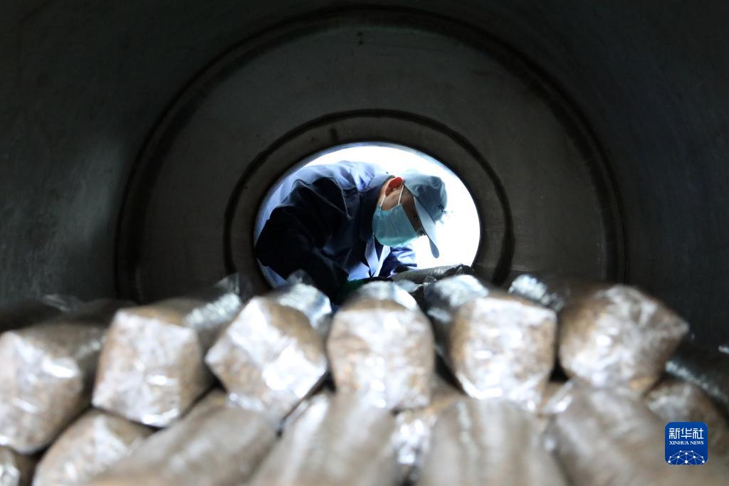11月29日,在後官寨鎮司官寨村食用菌基地,工作人員在食用菌菌種生産線上作業。