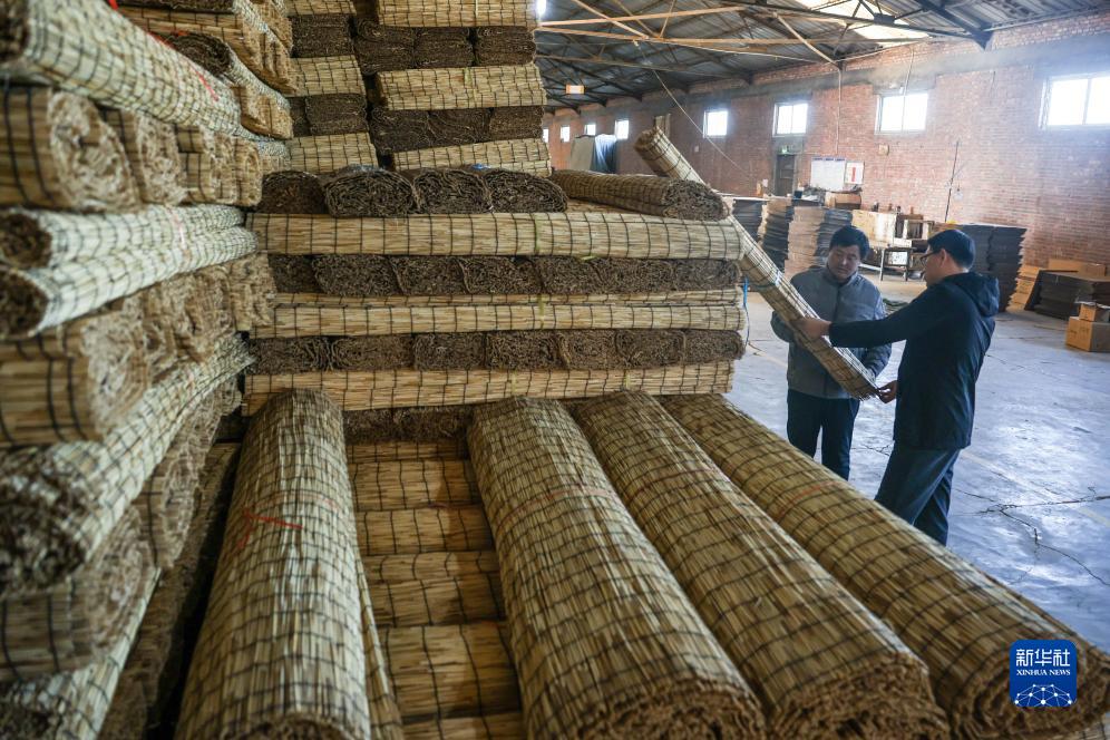 進入冬季,山東省無棣縣水灣鎮農戶利用農閒進行葦簾加工,創富增收。目前,水灣鎮已建成蘆葦産業園和專業交易批發市場,蘆葦年成交量達20萬噸。