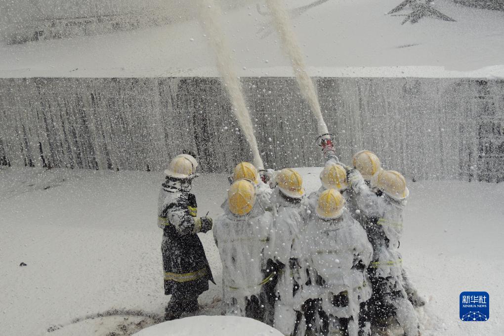 寶塔消防救援站消防員處置延安煉油廠火災(2014年4月26日攝)。