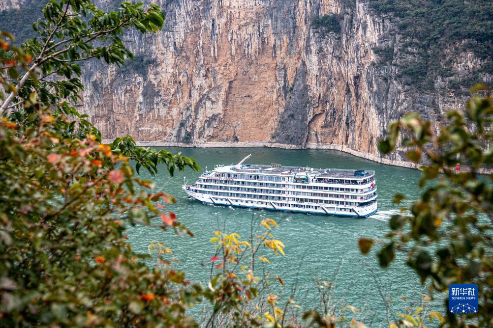 11月29日,一艘遊船從重慶市奉節縣長江瞿塘峽夔門駛過。