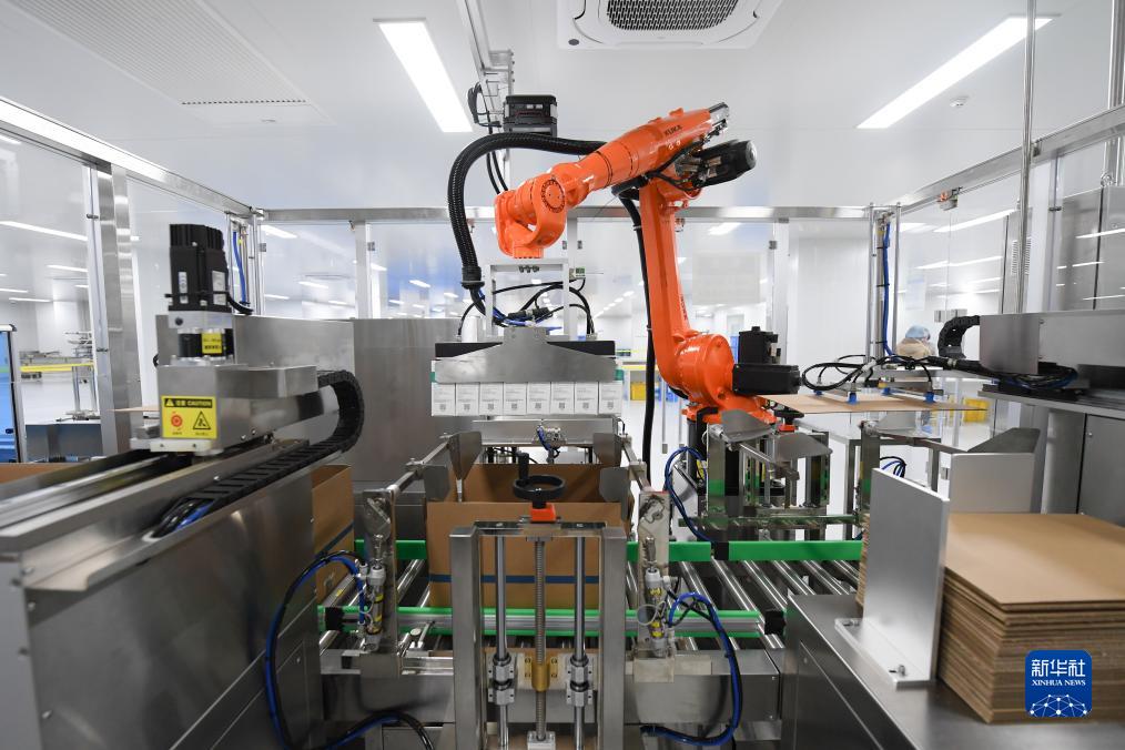 11月29日,在位於紹興市越城區的一家生物醫藥公司,機械臂在保健品自動瓶裝線上工作。