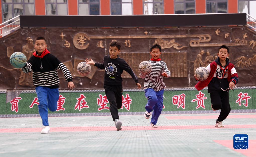 11月29日,學生在貴州省遵義市正安縣第二完全小學練習運球。