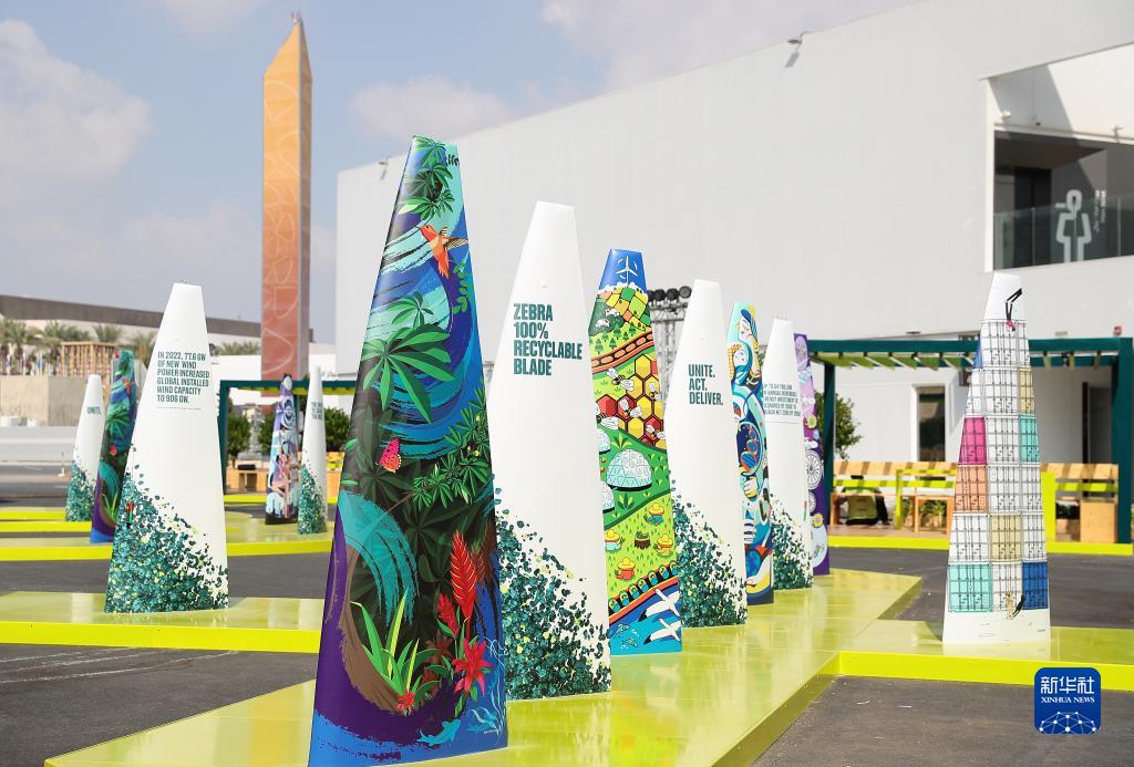 這是11月29日在阿聯酋迪拜拍攝的聯合國氣候變化大會舉辦地迪拜“世博城”內的一處景觀展示。